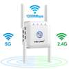 5G Repeater Wifi 5ghz Wifi Repeater 1200Mbps Router Wifi Extender Long Range 2.4G Wi Fi Booster Wi-Fi Amplifier Access Point   Product description Wifi Extender help you keep mobile devices, media players and computers connected to Wi-Fi with a reliable connection and expanded coverage in every corner of your home.   ① Say Goodbye to WiFi Dead Zones!   The 1200Mbps wifi extender has small size with better performance, extending wifi coverage, say goodbye to dead zones, ideal for your bedroom, floors, restroom etc.   ② Universal Compatibility   The wifi extender booster wireless work with any IEEE802.11b/g/n 2.4 GHz and 5.8 GHz router and access point, making it easy to expand and strengthen your network connection.   ③ AP Mode   AP mode converts a wired network to a wireless network without the need to set up plug and play.   ④ Connect up to 25 Devices   Connect devices like your iPad, smartphone, smart speaker, and more. 4 External antennas aid in delivering better performance   ⑤ Strong penetrability   wifi extender booster wireless makes far-distance transmission a breeze, plus the strong penetrability through two walls.   ⑥ Vent hole design   With heat dissipation design to improve durability.   【Item specification】   The WLAN standard   Radio frequency: 2.4 GHz and 5.8 GHz   Standards: IEEE 802.11 ac / a / b / g / n   Wireless speed: Up to 1200 Mbit / s   Wireless network security: 64/128 bit WEP; WPA / WPA2   Antennas: 4 * 5dBi external antennas.